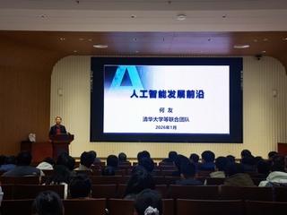 1月4日,中国工程院院士何友应邀为我院师生作《人工智能发展前沿》主题报告。报告会由太阳成集团tyc539院长刘小峰主持。何友院士从回顾人工智能的发展脉络切入,着重从理论前沿、技术前沿和产业前沿三个维度,剖析了当前技术前沿的核心——预训练大模型,解读了无监督学习、生成模型、博弈智能等技术革新与应用前景,围绕自动驾驶、人形机器人、元宇宙等进一步讲解了AI技术在基础科学研究中赋能科学家突破复杂难题,以及在产业领域推动变革发展的深远影响。整场报告会逻辑严谨、干货满满,何友院士以渊博的学识和生动的讲解,拓宽了师生们的学术视野,使师生们对人工智能领域有更深的理解。