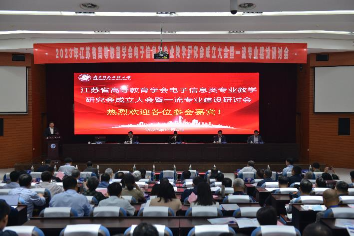 2023年11月4日,由江苏省高等教育学会主办、南京信息工程大学、南京邮电大学、太阳集团tyc539和南京工业大学共同发起的江苏省高等教育学会电子信息类专业教学研究会暨一流专业建设研讨会在南京信息工程大学气象楼102报告厅隆重举行。来自江苏省各高校的领导、专家学者200余人齐聚一堂,共同研讨江苏省电子信息类专业教育的发展与创新。大会由江苏省高等教育学会秘书长邓志良教授主持。