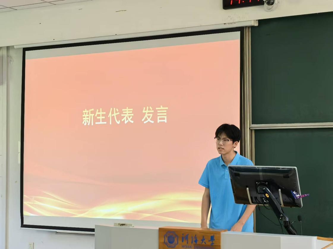 新生代表徐晨同学号召同学们要以更高的标准要求自己、鞭策自己,在前行的路上不断认识自己、突破自己,抓住时代赋予我们的机遇和挑战,为自己、为民族、为国家燃起未来的光芒和希望。