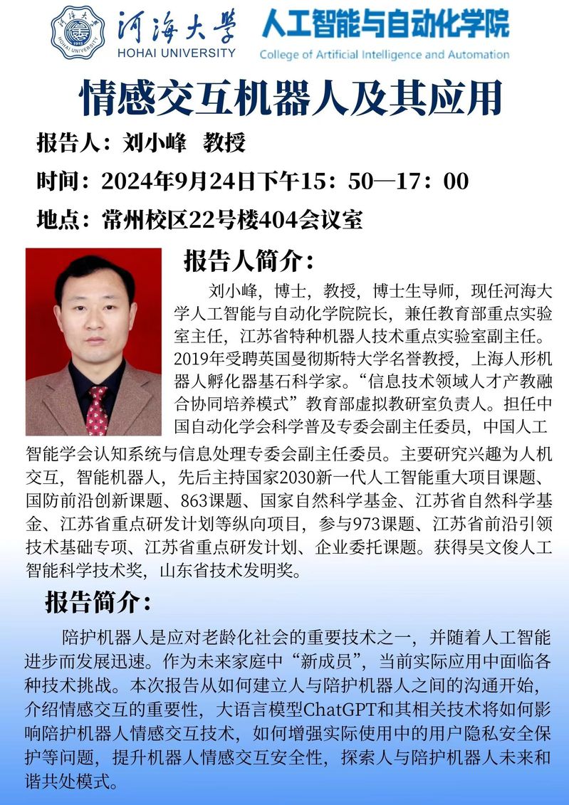 学术报告:情感交互机器人及其应用