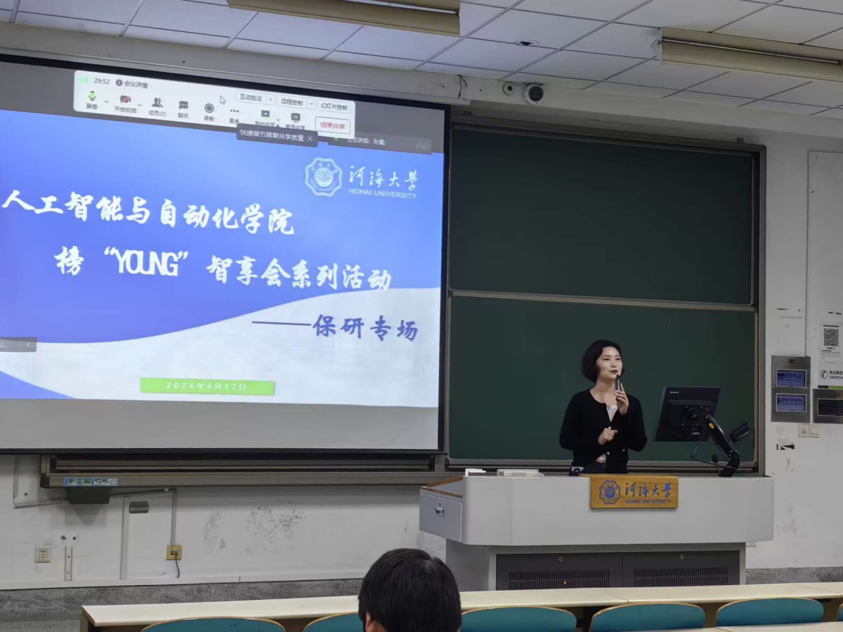 为了帮助同学们提前了解保研政策,增强保研信心与决心,明确未来的发展方向,4月17日晚,院学生会分别在江宁校区致高楼B211和常州校区2号楼C119成功举办了“榜‘Young’智享会——保研专场”主题活动。2023级本科生辅导员王珊老师及智能科学与技术专业的程凡、郁冰哲,自动化专业的王华程、刘延军、张靖宇等同学受邀担任活动嘉宾,并分享了各自的宝贵经验。